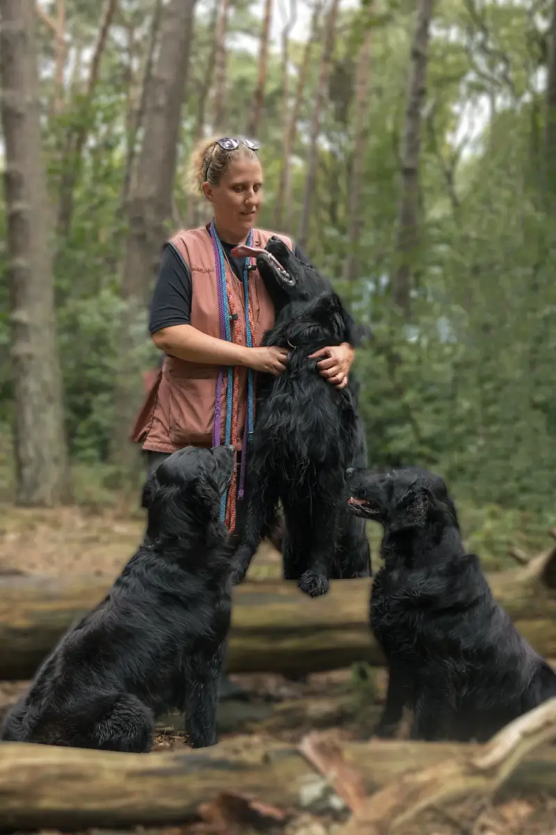 Ik ben Marjolein Schepers. Eigenaar van Huss Hondenuitlaatservice & snacks. Ook ben ik eigenaar van onze Flatcoated Retriever kennel Trust My Wings. Ik heb 4 honden (Flatcoated Retrievers). Juul, Melle, Daantje en Hidde. Juul en Melle zijn moeder en zoon. Het zijn 4 geweldige honden met alle 4 hun eigen unieke karakter. Iedere dag geniet ik volop met ze! Daarnaast vind mij ook veel in de bossen waar ik veel wandel en train met mijn honden. Jachttraining is ook een passie van mij. Al vanaf toen ik jong was, was ik altijd bezig met honden. Op 9 jarige leeftijd kwam mijn eerste hond, Bram. Vroeger heb ik op het Prinsentuin College VMBO dierhouderij gedaan. Ik heb bij de Martin Gaus Academy de opleiding tot Hondenuitlaatservice gevolgd en hier ben ik ook voor geslaagd. Ik heb ook de eerst module van Kynologisch instructeur gevolgd aan de Martin Gaus Academy, hiervoor ben ik geslaagd. Iedere hond heeft een eigen karakter, iedere hond is uniek en dat vindt ik het mooie aan dit werk. Al 11 jaar draai ik met heel veel liefde en plezier mijn Hondenuitlaatservice. Sinds 2023 is mijn bonusdochter Kate ook bij mijn Hondenuitlaatservice komen werken.